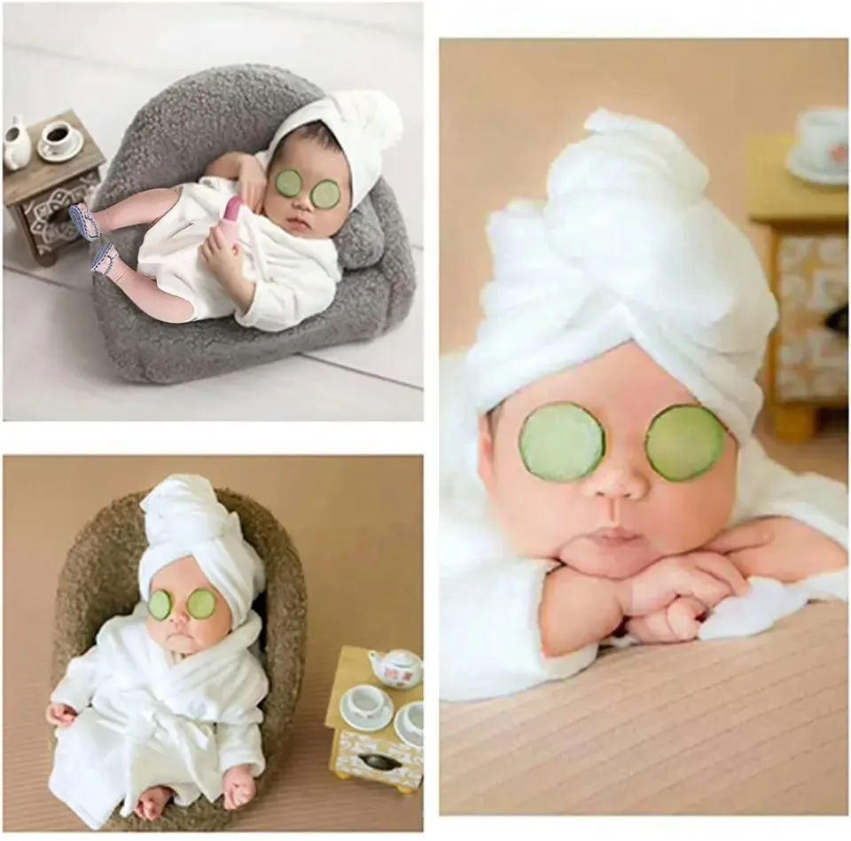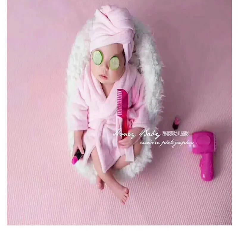 Newborn Baby Photography Outfit – Soft Cotton Bathrobe Style Nightwear Rope Set for Photoshoot Props-HK/SZ